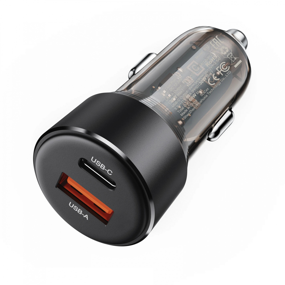 ПРОИЗВОДИТЕЛ Acefast КОД НА ПРОИЗВОДИТЕЛЯ ACEFAST-B12-BK ТИП За кола ЗА: Телефон Таблет МОЩНОСТ 60 W ПОРТОВЕ, БРОЙ 2 ПОРТОВЕ USB-C x 1 USB-A x 1 ПОРТОВЕ, МОЩНОСТ Single output: USB-C: 3.3V-11V~3A (PPS) / 5V~3A / 9V~3A / 12V~2.5A - 30W max (PPS / PD2.0 / PD3.0 / QC4+ / QC3.0 / QC2.0 / AFC / FCP) USB-A: 5V~3A / 9V~2.5A / 12V~2.5A - 30W max (QC3.0 / QC2.0 / AFC / FCP / SCP / PE2.0 / PE1.1 / BC1.2) Two ports output: USB-C + USB-A: 60W max НАЧИН НА ЗАРЕЖДАНЕ PPS PD3.0 PD2.0 QC4+ QC3.0 QC2.0 AFC FCP SCP BC1.2 ЦВЯТ Черен РАЗМЕРИ 61.7 x 28 x 28 mm ТЕГЛО 23 g ДРУГИ Transparent outer shell Suitable for fast charging of devices such as phones / tablets / game consoles, etc Multiple safety protection ГАРАНЦИЯ 24 месеца БАРКОД EAN-13 6974316282914
