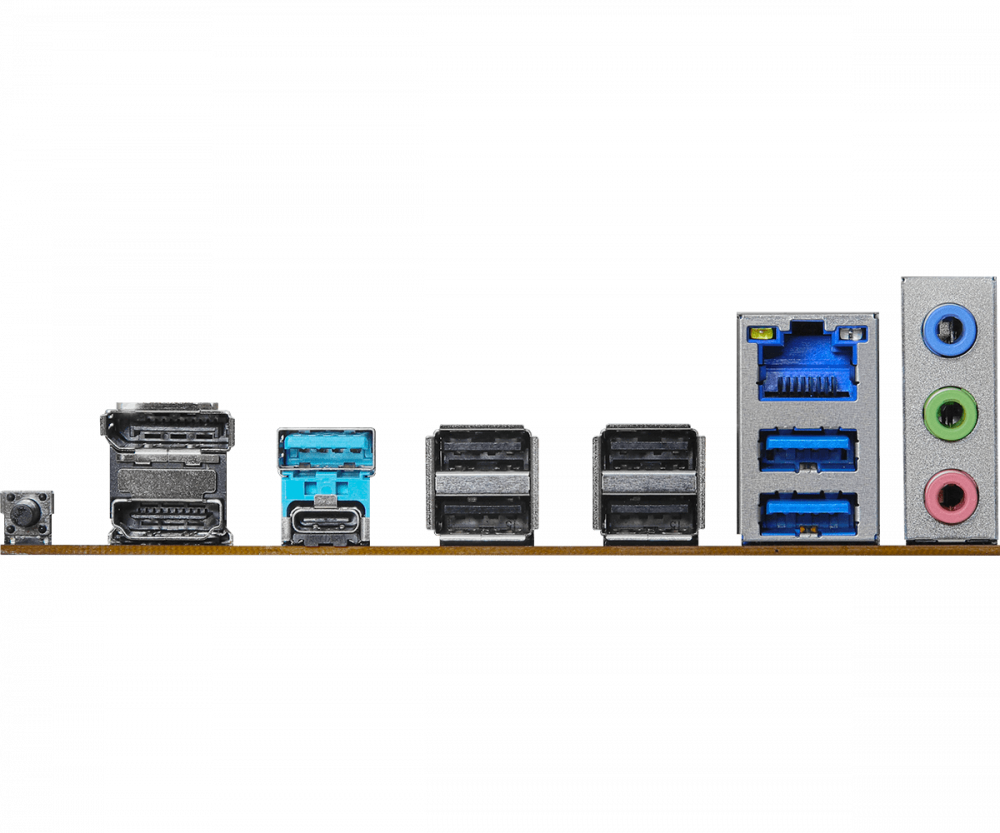 | Портове: | - 2 x Antenna Ports; - 1 x HDMI Port; - 1 x DisplayPort 1.4; - 1 x USB 3.2 Gen2 Type-A Port (10 Gb/s); - 1 x USB 3.2 Gen2 Type-C Port (10 Gb/s); - 2 x USB 3.2 Gen1 Type-A Ports; - 4 x USB 2.0 Ports; - 1 x RJ-45 LAN Port; - 1 x BIOS Flashback Button; - HD Audio Jacks: Line in / Front Speaker / Microphone |
