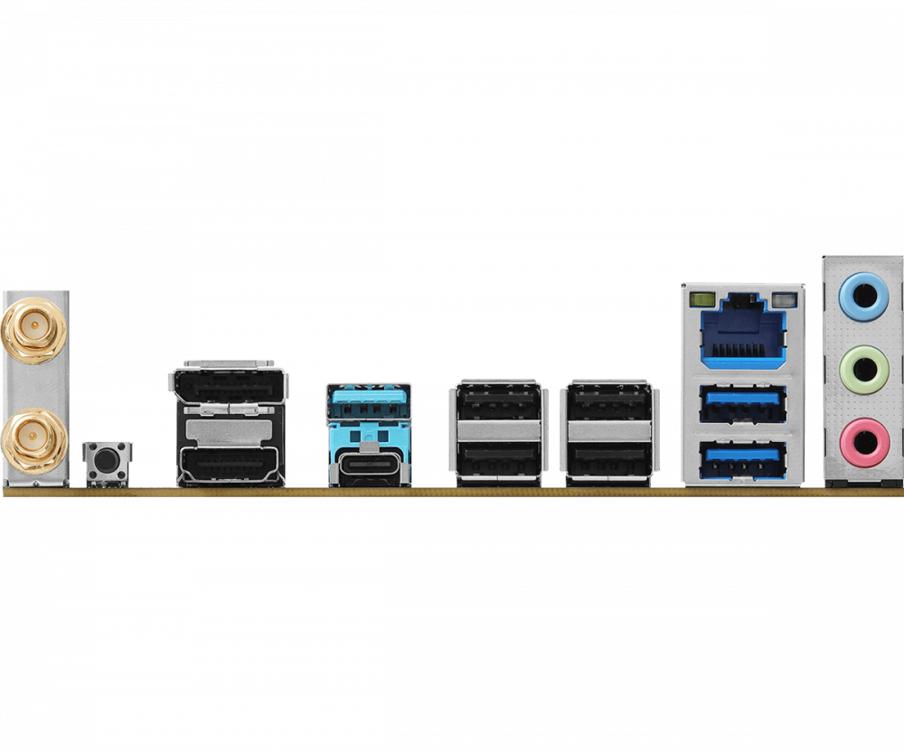 | Портове: | 2 x Antenna Ports;1 x HDMI Port;1 x DisplayPort 1.4;1 x USB 3.2 Gen2 Type-A Port (10 Gb/s);1 x USB 3.2 Gen2 Type-C Port;2 x USB 3.2 Gen1 Ports;4 x USB 2.0 Ports;1 x RJ-45 LAN Port;1 x BIOS Flashback Button;HD Audio Jacks: Line in / Front Speaker / Microphone |