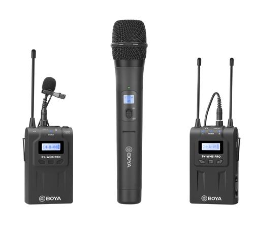 Безжичен микрофон BOYA BY-WHM8 Pro BY-WHM8 Pro UHF предаване с 48 канала Кардиоиден микрофон предавател A или B канали за избор на група Съвместим с BY-WM6 приемник и BY-WM8 приемник OLED дисплей Обхватът на работа може да достигне до 100м Захранва се с две АА батерии