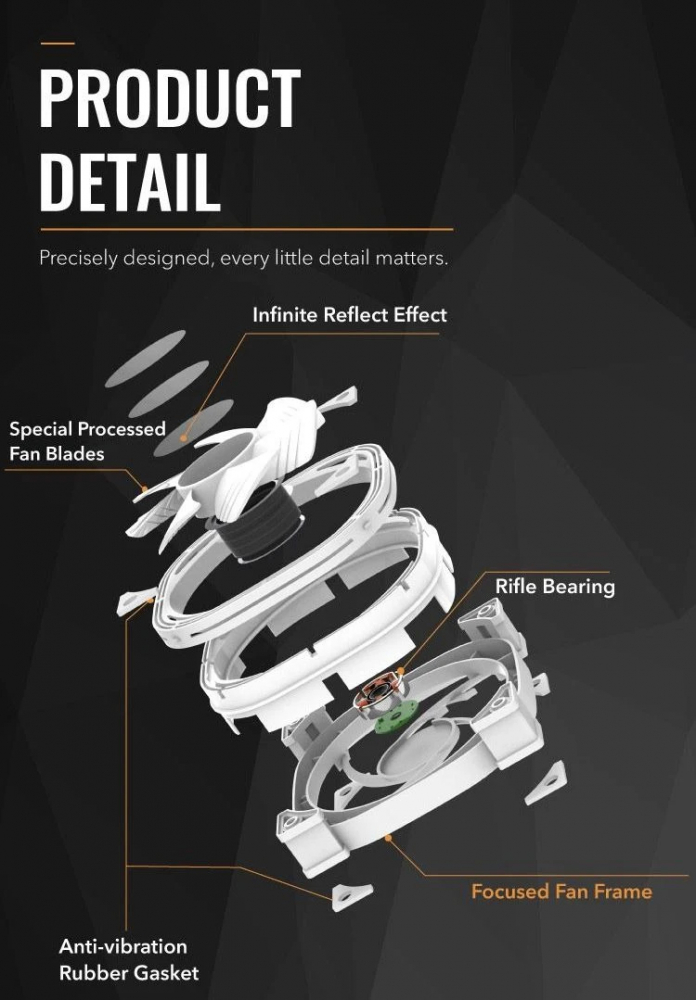 ПРОИЗВОДИТЕЛ Darkflash КОД НА ПРОИЗВОДИТЕЛЯ INF24-R-PRO-BK РАЗМЕР(мм) 120 x 120 x 25 mm ОБОРОТИ В МИНУТА(rpm) 600-1600 RPM ВОЛТАЖ 12 V DC REVERSE BLADE Да ТИП ЛАГЕРУВАНЕ Rifle Bearing ВЪЗДУШЕН ПОТОК 65 CFM ВЪЗДУШНО НАЛЯГАНЕ 0.85 mmH2O АМПЕРАЖ (A) 0.1 A НИВО НА ШУМ 26 dBA КОНЕКТОР 3 pin ADD-RGB 5V (V-D-NC-G) 4 pin PWM ЖИВОТ В ЧАСОВЕ 30000 RGB Addressable RGB LED Да ЦВЯТ Черен ДРУГИ Anti-Vibration Rubber Gasket Rifle Bearing Infinite Reflect Effect ГАРАНЦИЯ 24 месеца БАРКОД EAN-13 4710343798590