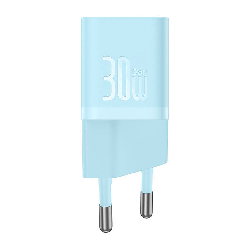 Бързо GaN5 зарядно от Baseus, оборудвано с USB Type C порт, който позволява зареждане с мощност до 30W. Позволява бързо зареждане на устройства в стандарта PD (Power Delivery).